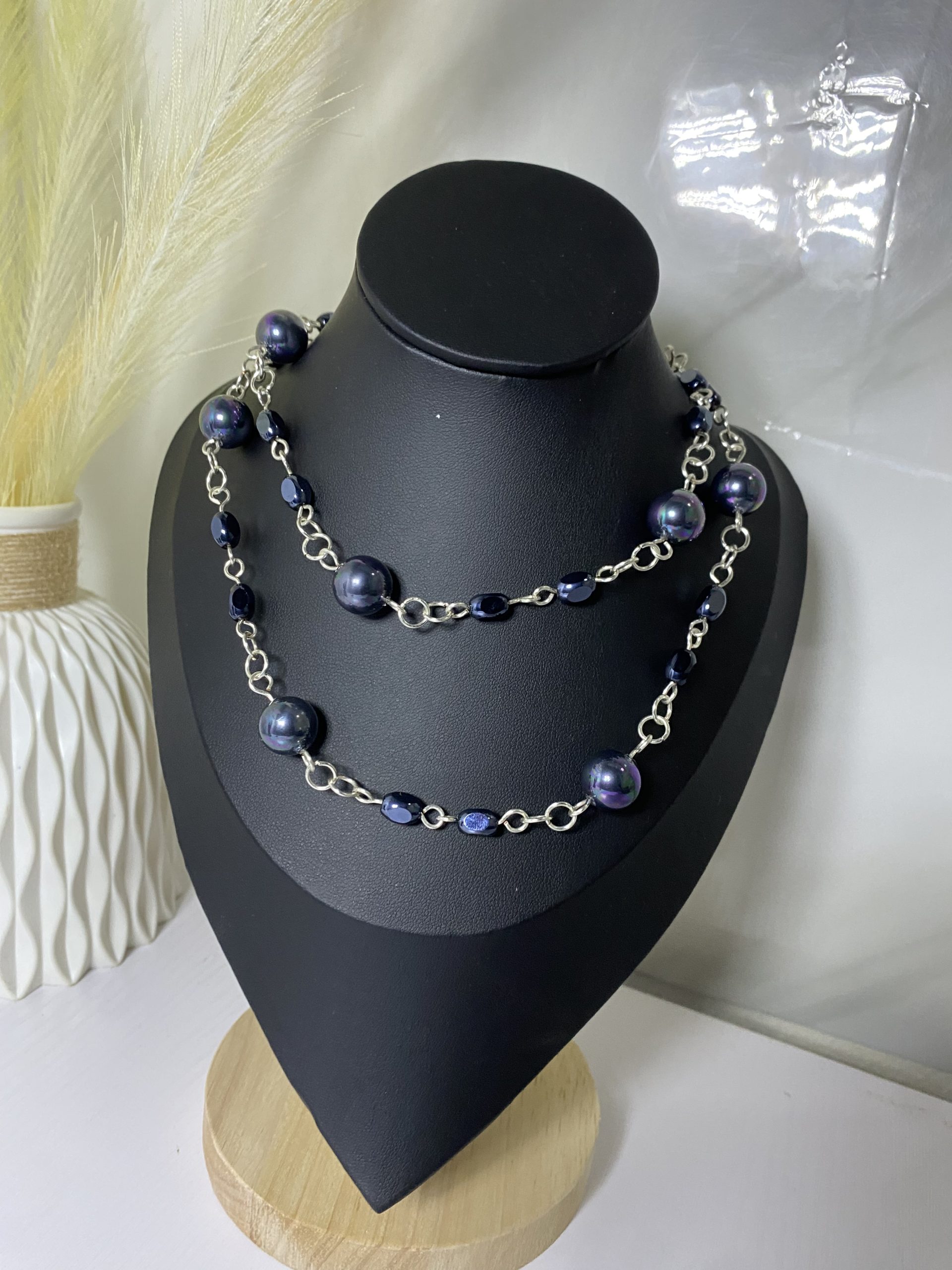 Featuring a double-layered design with rich iridescent pearls and deep navy stones, this piece embodies quiet authority and refined luxury.