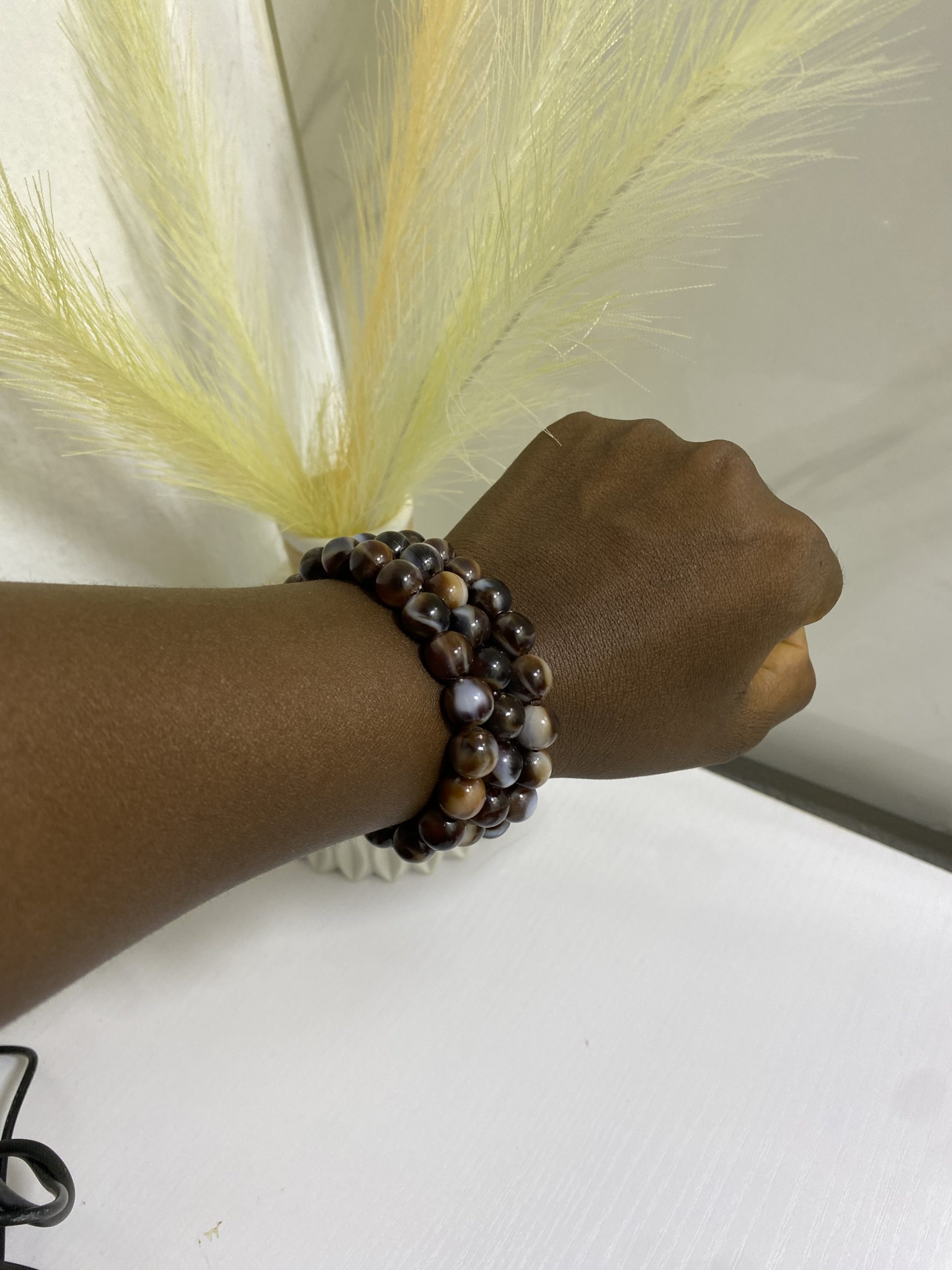 A refined multi-layer bead bracelet featuring rich brown marble tones, designed for effortless style, earthy elegance, and everyday wear.