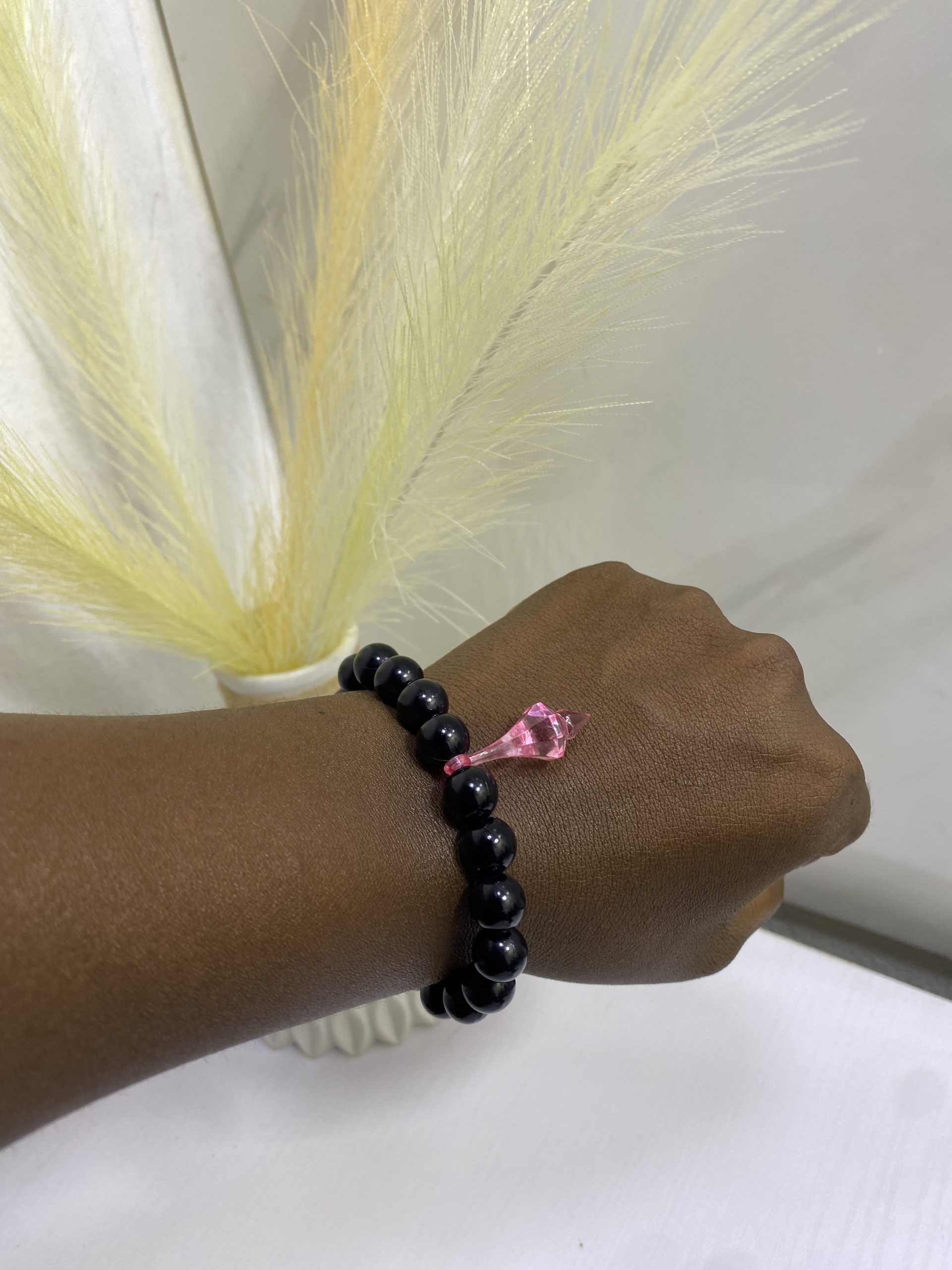 The Essence Bracelet – Pink Accent Edition is crafted for those who love subtle beauty and refined style. Featuring smooth, polished black beads paired with a soft pink crystal accent, this piece brings a gentle yet eye-catching charm.