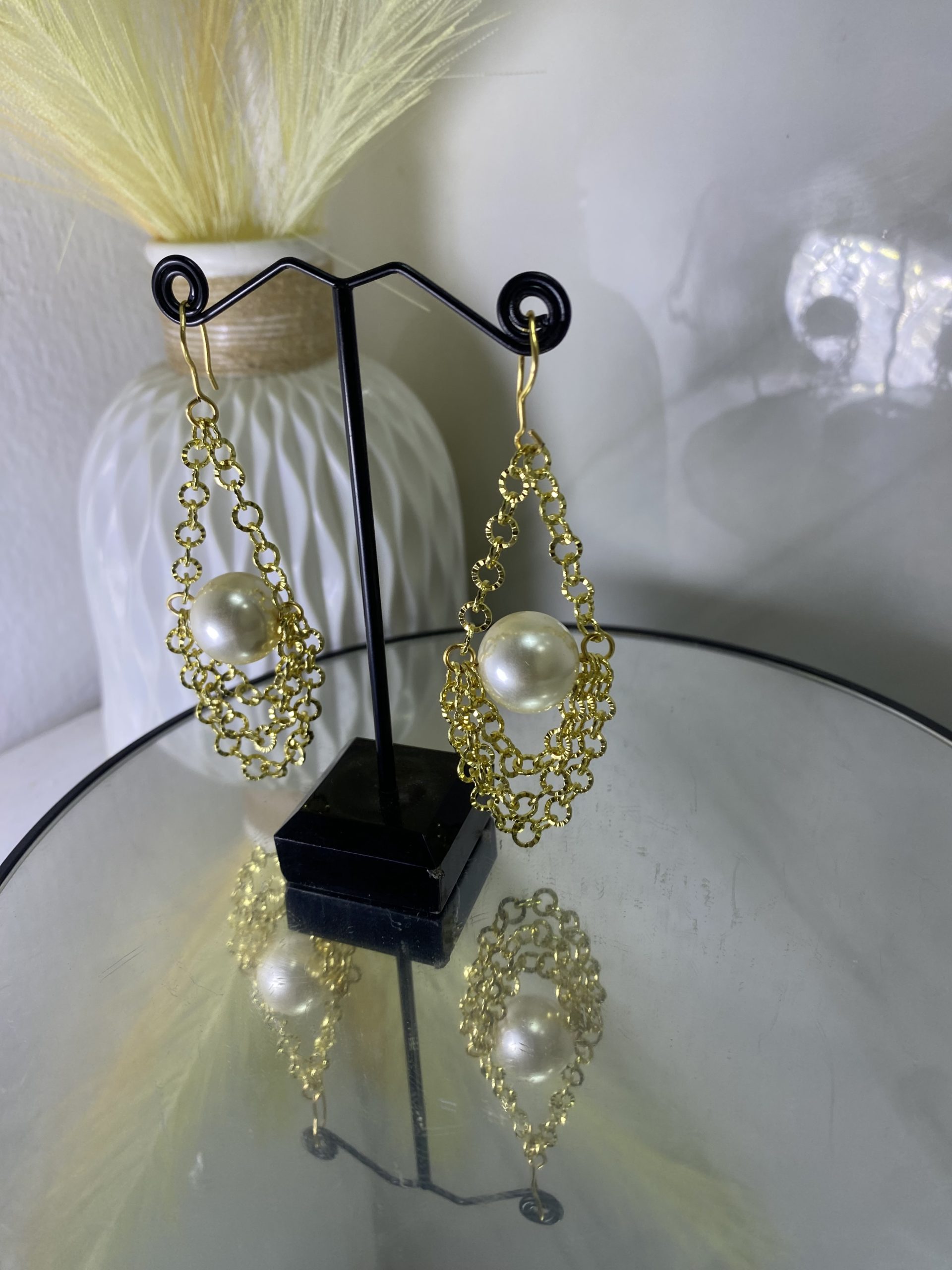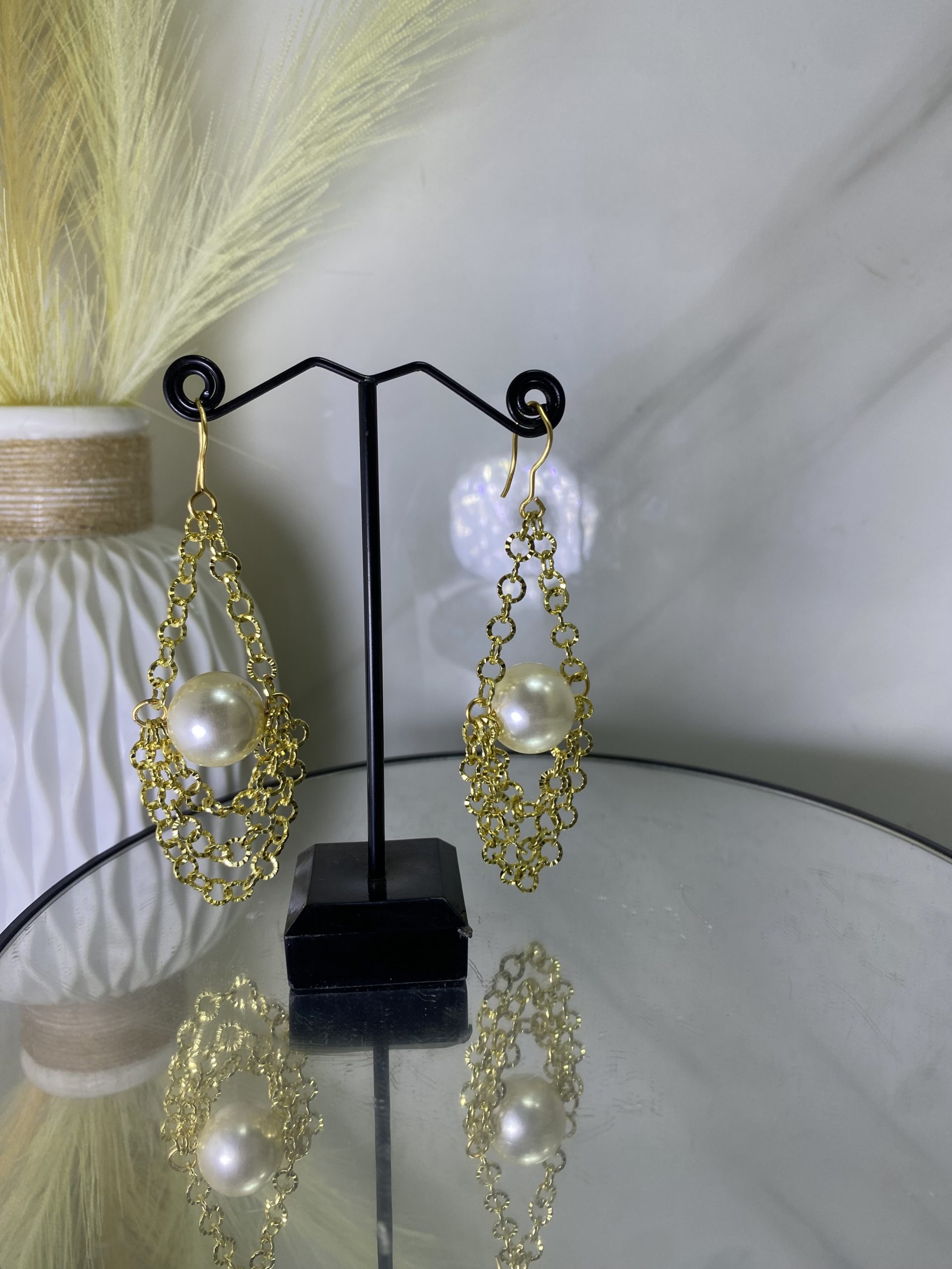 The Velora Earrings – Pearl Cascade Edition are crafted for the woman who embraces beauty with confidence and grace. Featuring delicate gold chain layers that flow effortlessly around a luminous pearl centerpiece, these earrings create a refined and captivating silhouette.