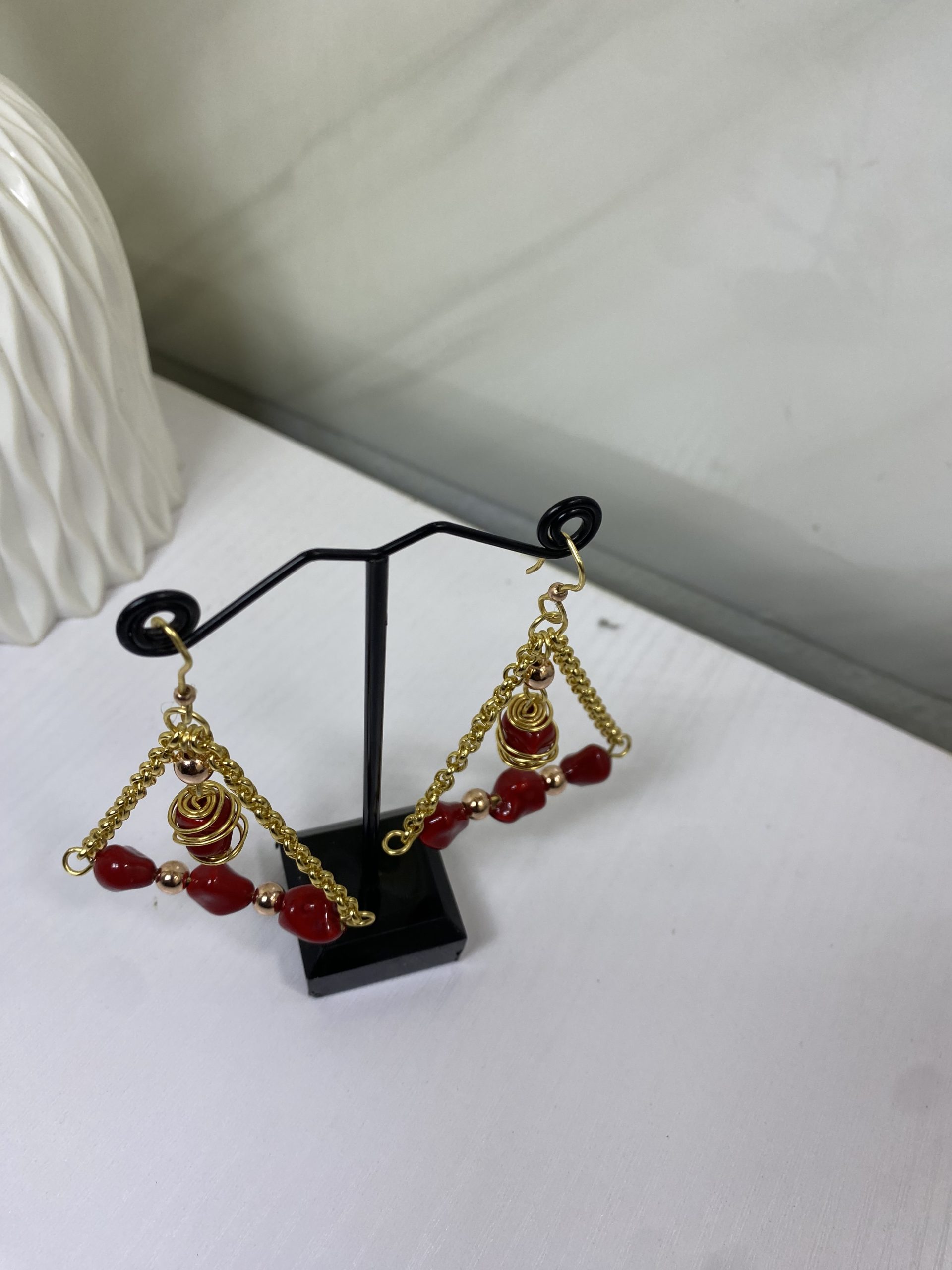 The Virelle Drop Earrings – Red Edition are designed for the woman who embraces bold elegance. Featuring rich red stones paired with gold-tone chain details and a sculptural drop element, these earrings create graceful movement and undeniable presence.